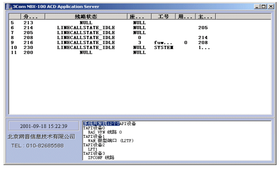 NBX呼叫中心的核心設(shè)備是3Com公司的NBX網(wǎng)絡(luò)交換機(jī),NBX網(wǎng)絡(luò)交換機(jī)支持開放式電話開發(fā)平臺(tái)TAPI2.X,TAPI它是Microsoft電話技術(shù)應(yīng)用程序編程界面標(biāo)準(zhǔn),運(yùn)用TAPI可以方便、高效地完成針對(duì)語音線路的控制開發(fā),從而完成自動(dòng)語音應(yīng)答(IVR)、自動(dòng)話路分配(ACD)、以及坐席接待、計(jì)費(fèi)、錄音等需求。使用TAPI這種標(biāo)準(zhǔn)使得用戶可以集成第三方CTI程序以完成各種高級(jí)需求。