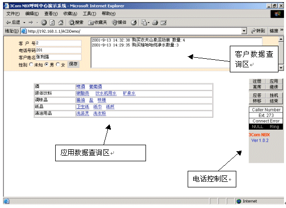 NV-AGENTControl和NV-AGENTPad。NV-AGENTControl是基于ActiveX的Ocx控件,利用該控件,第三方開發(fā)商可以自行開發(fā)界面,非常簡單地實(shí)現(xiàn)座席工號(hào)注冊、呼叫應(yīng)答、電話外撥等功能。NV-AGENTPad是在NV-AGENTControl之上開發(fā)的一個(gè)座席應(yīng)用解決方案,它通過瀏覽器方式運(yùn)行,第三方開發(fā)商基本上可以不進(jìn)行任何有關(guān)呼叫控制方面的開發(fā),就可以將自己的應(yīng)用系統(tǒng)和NBX系統(tǒng)完整集成。