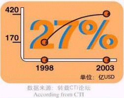 - 據(jù)CTI論壇轉(zhuǎn)引有關(guān)統(tǒng)計數(shù)字表明,全球呼叫中心外包市場1998年的產(chǎn)值為170億美元,2003年有望達(dá)到420億美元,并正以每年遞增27%的速度快增長;