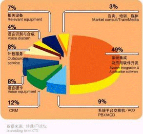 - 中國CRM市場正在快速增長,從事與呼叫中心有關(guān)產(chǎn)品、服務(wù)和運營方面的廠商數(shù)量約為620多家。其中,系統(tǒng)集成及應(yīng)用軟件開發(fā)商的數(shù)量占有49%的比例,是呼叫中心從業(yè)廠商中最為主要的組成部分。