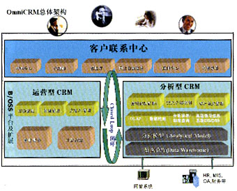 經(jīng)營分析型CRM: OmniVision是OmniCRM方案中經(jīng)營分析型CRM的核心,它采用數(shù)據(jù)倉庫、ETL、OLAP分析、靈活報(bào)表展現(xiàn)及數(shù)據(jù)挖掘等技術(shù),結(jié)合電信業(yè)務(wù)的深厚經(jīng)驗(yàn),進(jìn)行用戶分析、業(yè)務(wù)分析、收益分析、大客戶分析、營銷分析、競爭分析、服務(wù)質(zhì)量分析等主題分析。 客戶聯(lián)系中心: OmniContactCenter是OmniCRM方案中的客戶聯(lián)系中心,包括多媒體呼叫中心、網(wǎng)上用戶自服務(wù)系統(tǒng)(網(wǎng)上營業(yè)廳)、直郵傳真處理中心等。所有的市場活動(dòng)都是由客戶聯(lián)系中心傳遞給客戶的,所有的客戶反饋和請求都是由這里反饋給分析系統(tǒng)的。 大客戶管理:OmniVIP OmniVIP是亞信公司結(jié)合深厚的行業(yè)知識(shí),專門針對集團(tuán)大客戶、商業(yè)大客戶、潛在大客戶等各類電信大客戶,從分析和運(yùn)營兩個(gè)方面為各電信公司提供的完整而領(lǐng)先的大客戶管理方案,它能夠?yàn)檫\(yùn)營商提供現(xiàn)有及潛在大客戶的全方位視圖,包括客戶行為、業(yè)務(wù)情況、商業(yè)獲利率、競爭情況等,挖掘潛在商機(jī),使利潤最大化;能夠使運(yùn)營商有效地降低成本;能夠使運(yùn)營商為大客戶提供真正的個(gè)性化服務(wù);能夠使運(yùn)營商預(yù)測、吸引并發(fā)展?jié)撛诘拇罂蛻;能夠使運(yùn)營商有效地管理大客戶服務(wù)人員,提高客戶的滿意度和忠誠度;能夠通過OmniContactCenter、代理商、營業(yè)廳、SMS、Email等全面的渠道管理,幫助電信運(yùn)營商對大客戶進(jìn)行“全員、全程、全方位”服務(wù),從而全方位地為大客戶提供最完善優(yōu)質(zhì)的服務(wù)。 市場管理:OmniMarketing OmniMarketing根據(jù)分析系統(tǒng)得出的結(jié)論,產(chǎn)生相應(yīng)的市場活動(dòng)發(fā)送給運(yùn)營型CRM部分執(zhí)行,同時(shí)將執(zhí)行結(jié)果和反饋收集回來進(jìn)行比較、評價(jià)和進(jìn)一步的分析,以期設(shè)計(jì)出更合理的資費(fèi)和更貼切的業(yè)務(wù)給用戶。 銷售管理:OmniSFA 隨著競爭的加劇,運(yùn)營商的銷售也將從傳統(tǒng)的柜臺(tái)坐等的經(jīng)營模式轉(zhuǎn)變成有針對性的主動(dòng)出擊發(fā)展客戶的模式。銷售管理系統(tǒng)就是提供了針對銷售人員的銷售輔助工具,其中包括任務(wù)分配與下達(dá)、日程安排、客戶資料管理、銷售機(jī)會(huì)管理、銷售漏斗、報(bào)價(jià)管理、訂單合同管理、銷售業(yè)績考評和資金評定等模塊。 通過OmniSFA,銷售工作將按照科學(xué)化正規(guī)化流程化的方式來進(jìn)行。 運(yùn)作型和分析型CRM的互動(dòng)循環(huán)