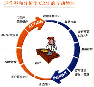 運(yùn)作型CRM和分析型CRM不是孤立的模塊,他們之間是互動(dòng)的,首尾相接關(guān)系。分析型CRM從客戶背景資料和消費(fèi)數(shù)據(jù)經(jīng)過數(shù)據(jù)采集、數(shù)據(jù)倉庫、數(shù)據(jù)挖掘和分析而得出分析的結(jié)論。這些結(jié)論又被制定成為市場活動(dòng)被運(yùn)營型CRM通過客戶聯(lián)系中心、銷售管理、大客戶管理等模塊進(jìn)行執(zhí)行。執(zhí)行的結(jié)果和反饋又重新被分析系統(tǒng)進(jìn)行分析和評價(jià)形成一個(gè)循環(huán)過程。 亞信科技(中國)有限公司 地 址:北京海淀區(qū)中關(guān)村南大街6號(hào)中電信息大廈三、四層 |