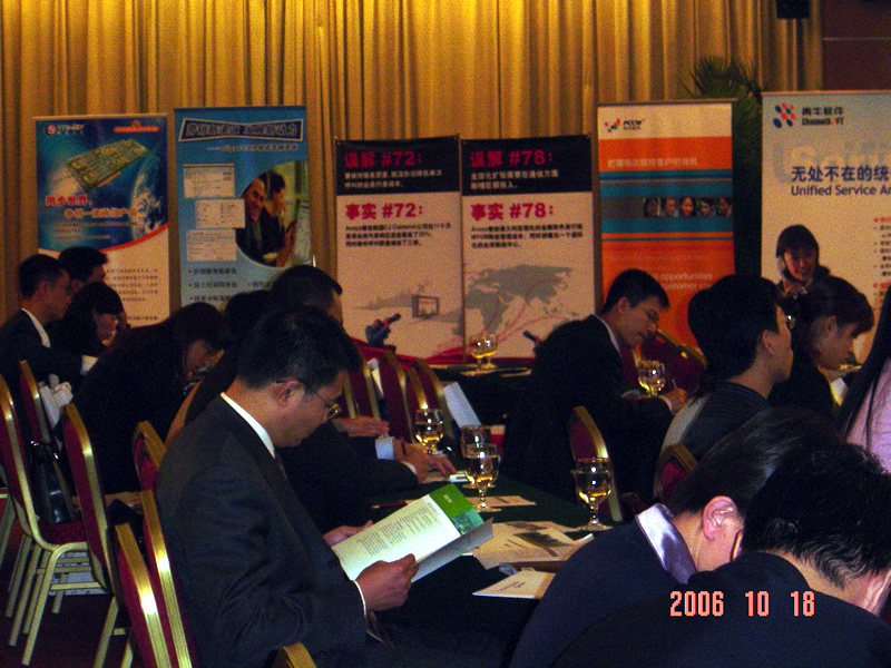 。。2006年10月18日,2006保險(xiǎn)業(yè)呼叫中心應(yīng)用暨電話營(yíng)銷(xiāo)高峰研討會(huì)在北京天鴻科園大酒店隆重召開(kāi),以下是會(huì)議現(xiàn)場(chǎng)的相關(guān)圖片報(bào)道: