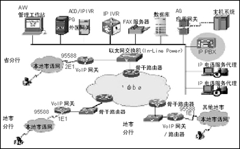 中國工商銀行甘肅省分行客戶服務(wù)中心的設(shè)計(jì)第一期系統(tǒng)容量為蘭州市為60路中繼接入,其他地(市)根據(jù)客戶容量分別采用30路中繼接入或12路中繼接入。語音接入都采用E1數(shù)字中繼接入方式,以后可以很方便地升級。省行IP