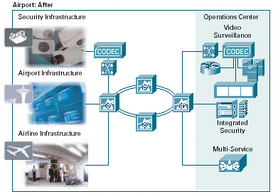 。。許多機(jī)場(chǎng)安全系統(tǒng)基于需人工協(xié)調(diào)提示和報(bào)警的不兼容應(yīng)用。通過(guò)在網(wǎng)絡(luò)上實(shí)現(xiàn)這些系統(tǒng)和在基于標(biāo)準(zhǔn)的通用基礎(chǔ)設(shè)施上傳輸信息,機(jī)場(chǎng)可實(shí)時(shí)關(guān)聯(lián)安全信息,并根據(jù)整體形勢(shì)作出立即行動(dòng)。思科提供了一個(gè)強(qiáng)大的網(wǎng)絡(luò)基礎(chǔ)設(shè)施,可集成機(jī)場(chǎng)中的視頻監(jiān)視、其它物理安全設(shè)備和用于緊急響應(yīng)及通信的設(shè)備。無(wú)論設(shè)備使用有線還是無(wú)線連接,都可在所有類型的設(shè)備上實(shí)現(xiàn)語(yǔ)音、視頻和數(shù)據(jù)交換。