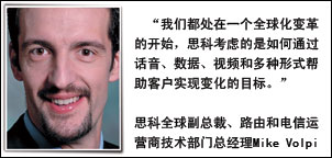 “過去有一個應用就有一個網(wǎng)絡,而現(xiàn)在的理想模式是只用一個通用的網(wǎng)絡,使運營商可以更快、更經(jīng)濟地推出新業(yè)務,并且使運營商可以把不同的介質類型混合在一起,可以創(chuàng)造一種過去不曾有過的用戶體驗,而IP則是整個通用網(wǎng)絡的基礎”,這是Volpi和Dominguez的共同認識,也是思科在電信版圖中雄心勃勃的底氣所在。