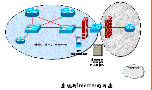 例如在區(qū)中心與Internet的連接就設(shè)置了PIX防火墻,將內(nèi)網(wǎng)與外網(wǎng)隔斷,而作為用戶WEB查詢用的服務(wù)器則置于DMZ(Demilitarized
