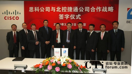 CTI論壇(ctiforum)3月23日消息(記者 潘婷婷):2010年3月22日,北京——北控捷通(北京)科技發(fā)展有限公司(以下簡稱“北控捷通”)與思科今天正式簽署合作備忘錄,雙方將在教育行業(yè)通信技術(shù)發(fā)展方面展開更加深入的合作。在合作中,思科將提供統(tǒng)一通信和統(tǒng)一計算解決方案,與北控捷通一起共同推動IP平臺技術(shù)在教育行業(yè)中的應(yīng)用、推廣和標準化。同時,此次合作也使北控捷通成為思科在教育行業(yè)優(yōu)先推廣應(yīng)用解決方案的合作伙伴之一。