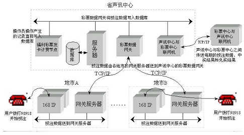 聲訊中心通過與彩票中心的聯(lián)網(wǎng)機(jī)定時(shí)地在開獎(jiǎng)前把每期彩票投注數(shù)據(jù)傳送給彩票中心;彩票中心在開獎(jiǎng)后把中獎(jiǎng)號碼、各等獎(jiǎng)的數(shù)目、獎(jiǎng)金金額等數(shù)據(jù)傳送到聲訊中心,聲訊中心將中獎(jiǎng)號碼和各等獎(jiǎng)金金額存入數(shù)據(jù)庫并根據(jù)中獎(jiǎng)號碼開獎(jiǎng),生成中獎(jiǎng)記錄,通過核對中獎(jiǎng)數(shù)目后,電信營業(yè)部門可以開始兌獎(jiǎng)。聲訊中心每期將兌獎(jiǎng)結(jié)果傳送到彩票中心備案。