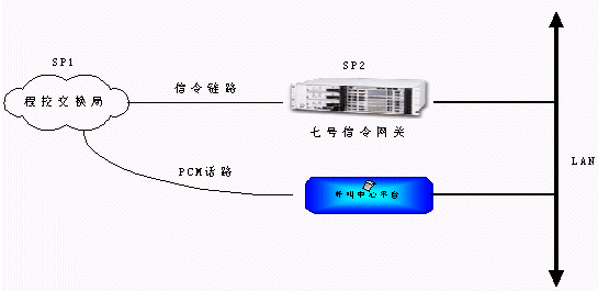 從程控端局送出來的信令和話路通過不同的PCM傳輸,信令鏈路接到七號信令網(wǎng)關轉(zhuǎn)換,通過消息方式傳遞到呼叫中心平臺,而話路則直接通過PCM線連接到電信平臺上進行話路連接。這種方式結構明晰,有利于系統(tǒng)管理,大大增強了系統(tǒng)容量的擴展能力。