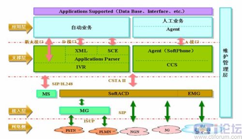 接入層:SoftACD與下面的網(wǎng)絡資源的協(xié)議接口層。包括所有網(wǎng)絡資源和特殊資源,如SoftSwitch、MS等。