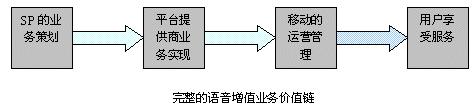 在語音雜志業(yè)務(wù)運(yùn)營中,SP、語音平臺提供商、移動公司、移動用戶組成了一條完整的價值鏈,如下圖所示: