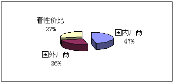 。5)向誰(shuí)購(gòu)買:鑒于國(guó)內(nèi)并沒有知名度很高的CRM實(shí)施廠商,而國(guó)外的著名廠商在國(guó)內(nèi)的品牌宣傳也不足,所以我們的調(diào)查表中只設(shè)了:國(guó)內(nèi)廠商、國(guó)外廠商和根據(jù)性價(jià)比進(jìn)行選擇三個(gè)項(xiàng)目,與購(gòu)買能力對(duì)照,預(yù)期實(shí)施金額在100萬以下的企業(yè),一般側(cè)重國(guó)內(nèi)廠商,而實(shí)施金額在100萬以上企業(yè)則側(cè)重國(guó)外企業(yè)。