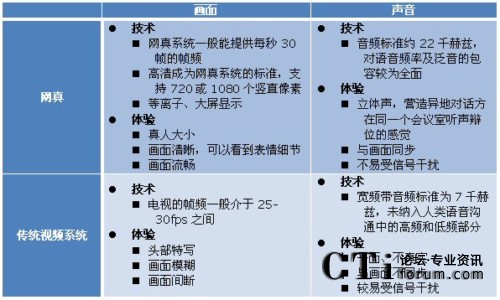 網(wǎng)真產(chǎn)品與企業(yè)的其他視覺(jué)溝通產(chǎn)品不同,不同于以軟件為基礎(chǔ)的視頻通信應(yīng)用、電話視頻、以硬件為基礎(chǔ)的桌面視頻系統(tǒng)及群體視頻會(huì)議等各類(lèi)傳統(tǒng)視頻系統(tǒng)。Frost