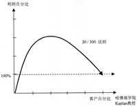 對客戶群的分析,經(jīng)濟(jì)理論界有一個著名的80-20理論,即在一個企業(yè)中,通常是20%的客戶貢獻(xiàn)了80%的利潤,而有可能40%的客戶加起來的利潤還不到1%;而依照20-300理論,實(shí)際上20%的客戶,貢獻(xiàn)著企業(yè)300%的利潤,言外之意就是說,剩下的客戶可能是“吃”掉利潤的人群。但是對于剩下的80%客戶,銀行可能要花費(fèi)更多的人力、物力去提供服務(wù),所以實(shí)際上銀行或企業(yè)很有可能在做虧本買賣。因此,分析客戶群,調(diào)配資源非常重要(如下圖所示)。