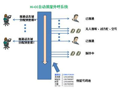 圖:Hi-CC自動批量外呼工作示意圖