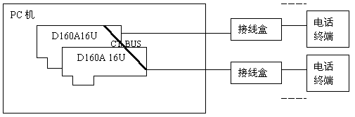 2、兩塊東進(jìn)D160A 16U模擬語(yǔ)音卡(PCI):?jiǎn)伟逄峁?6路話路處理能力。