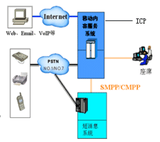 CTI技術(shù)是計(jì)算機(jī)電信集成技術(shù),它的信令網(wǎng)關(guān)化、媒體處理網(wǎng)關(guān)化、標(biāo)準(zhǔn)接口、可編程等特點(diǎn)非常適合移動(dòng)內(nèi)容服務(wù)和聲訊服務(wù)的需求。因此,在移動(dòng)內(nèi)容服務(wù)規(guī)范中,主要技術(shù)依據(jù)就是CTI技術(shù)和SMS技術(shù)。