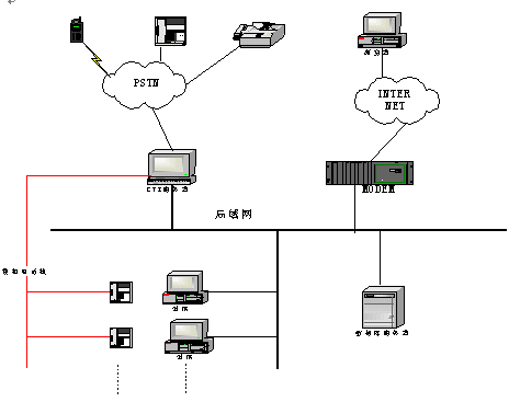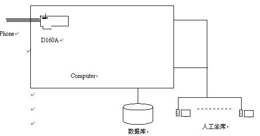 整個(gè)系統(tǒng)主要由CTI服務(wù)器(語(yǔ)音處理服務(wù)器)構(gòu)成,結(jié)構(gòu)圖如下。基于東進(jìn)D160A的CTI服務(wù)器方便地實(shí)現(xiàn)了 呼叫排隊(duì): 外線呼入時(shí),將呼叫自動(dòng)分配到空閑座席; 座席全忙時(shí),將呼叫進(jìn)行排隊(duì),待座席空閑時(shí),自動(dòng)轉(zhuǎn)接。 自動(dòng)語(yǔ)音提示:外線呼入時(shí),自動(dòng)播放提示語(yǔ)音"您好,歡迎使用XX 系統(tǒng)、自動(dòng)服務(wù)請(qǐng)按0,人工服務(wù)請(qǐng)按1;如果選擇人工服務(wù),座席臺(tái)全忙時(shí),放提示音"服務(wù)臺(tái)正忙,請(qǐng)稍候"。自動(dòng)服務(wù):播放語(yǔ)音提示,指導(dǎo)客戶操作。顧客可以利用音頻按鍵輸入信息;根據(jù)客戶的音頻按鍵播放相應(yīng)的信息,或者進(jìn)入下一級(jí)菜單。坐席服務(wù):外線撥入系統(tǒng)后,如果選擇人工服務(wù),系統(tǒng)將來(lái)話與臺(tái)內(nèi)座席接通。