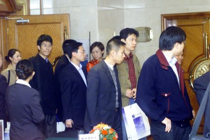 意外之一:預(yù)定的簽到時間是下午兩點(diǎn),根據(jù)一般與會者都會遲到的"原理",組委會并不著急,沒想到工程師們出于守時的習(xí)慣,不少人提前了一、二十分鐘就到達(dá)了,簽到處頓時人滿為患。