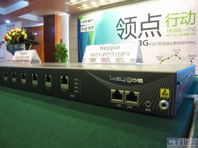 據(jù)了解,此次演示是基于以東進Keygoe多媒體交換機為主體的平臺,東進Keygoe多媒體交換機系列產(chǎn)品提供融合、開放、靈活和高性能的多業(yè)務承載平臺,可與3G網(wǎng)絡完全融合。此外在現(xiàn)場,Keygoe