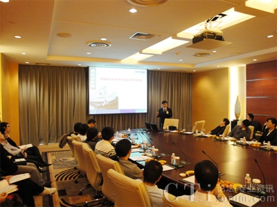 東進(jìn)Keygoe產(chǎn)品經(jīng)理劉駿先生是本次活動當(dāng)之無愧的頂梁柱,活躍在沙龍活動的每一站。他對3G通信市場進(jìn)行了深入淺出的分析,借鑒國外成功的案例經(jīng)驗,并對中國可能的熱點業(yè)務(wù)做出東進(jìn)的預(yù)測,即在將來,手機上網(wǎng),視頻點播,定位服務(wù)以及下載服務(wù)可能成為熱點,同時,重點列舉和分析了東進(jìn)在3G業(yè)務(wù)應(yīng)用的探索成果和經(jīng)驗。會中對將視頻功能嵌入到“3G總機一號通”這類應(yīng)用的描述,非常引人入勝,尤其讓人注意的是,他認(rèn)為3G視頻在將來不會作為一個單獨的業(yè)務(wù)而存在,而公眾業(yè)務(wù)并沒有如預(yù)期般成為主流。此外,以國慶60周年閱兵空中梯隊現(xiàn)場指揮調(diào)度系統(tǒng)應(yīng)用為例,對行業(yè)呼叫中心的成功案例分享以及重點行業(yè)的前景預(yù)測分析也給客戶留下很深刻的印象。劉駿表示,對于正進(jìn)入新格局的市場,多媒體交換機正愈加凸顯其多媒體處理性能,并加速與其他通信系統(tǒng)的融合,而理解客戶的需求,成為重中之重。