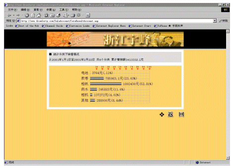 宇峰公司(www.fromforty.com)是柯達(中國)有限公司在中國華東地區(qū)的總代理,負責(zé)管理華東地區(qū)近600個分銷商和連鎖店。公司非常重視信息化建設(shè),添設(shè)了大量的計算機,建立起初步的管理系統(tǒng)。但是直到2000年還是依靠E-mail傳遞大量的Excel表格獲取需要的產(chǎn)品銷售和庫存的信息。這些表格對各級分銷商查詢和統(tǒng)計數(shù)據(jù)來說非常麻煩,因為每周要處理幾百個訂購單。整個處理過程非常緩慢,并且成本很高,也容易造成各種的數(shù)據(jù)錯誤。而公司內(nèi)部對業(yè)務(wù)人員銷售情況的統(tǒng)計,也頗為麻煩,因為下級分銷商上報上來的數(shù)據(jù)準確性差,并且不夠及時。處理這些表格對宇峰公司和分銷商以及連鎖店而言都是效率很低的,并且常常令人茫然不知所措。