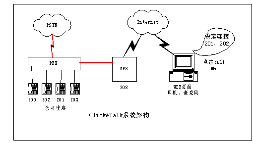 舉個(gè)例子,在傳統(tǒng)的網(wǎng)上交流手段下,對(duì)于一個(gè)在線商戶來(lái)說(shuō),其客戶如果需要與而且也容易造成客戶流失,F(xiàn)在采用Click&Talk系統(tǒng)后,一個(gè)在線的商戶只要將一個(gè)Click & Talk的按鈕嵌在在線商店里。世界各地的用戶只需要通過(guò)PC,點(diǎn)擊在線商戶的這個(gè)按鈕,就能與商戶電話聯(lián)系,或請(qǐng)求在方便的時(shí)間給予回?fù)堋Mㄟ^(guò)這種通信模式,世界各地的客戶都能和您保持密切互動(dòng)的聯(lián)系,而不用擔(dān)心長(zhǎng)途電話的費(fèi)用。還可以實(shí)現(xiàn)公司出差人員及分支機(jī)借助Click&Talk平臺(tái)和公司總部的通話的應(yīng)用,大幅節(jié)省話費(fèi)成本。