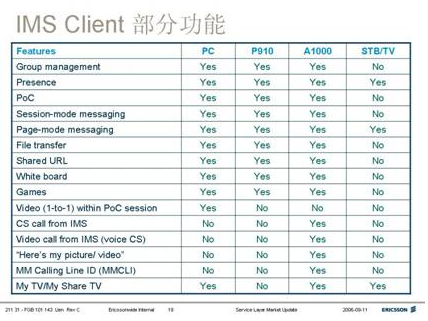 已經(jīng)實現(xiàn)的IMS業(yè)務(wù)有:組群管理,IPTV,IM即時消息,Push-to-talk POC,視頻會議,文件傳送,交互游戲,協(xié)同工作(白板應(yīng)用)等等