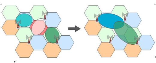 一旦出現(xiàn)退服,OSS會(huì)協(xié)調(diào)問題基站周邊基站的扇區(qū)來補(bǔ)償退服的無線覆蓋。如下圖,參與補(bǔ)償?shù)幕緯?huì)調(diào)整下行發(fā)射功率、天線傾角等來補(bǔ)償退服區(qū)域,甚至調(diào)低上行信號(hào)接收門限變相地?cái)U(kuò)大該扇區(qū)覆蓋以接入更多退服區(qū)域的終端。當(dāng)然,由于扇區(qū)的調(diào)整,會(huì)造成鄰區(qū)關(guān)系變化、切換邊界變化、干擾增加,這些就需要OSS提供的其他功能ANR、MRO、ICIC來聯(lián)合優(yōu)化。
