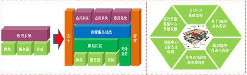 企業(yè)的發(fā)展和業(yè)務(wù)的創(chuàng)新越來越離不開IT技術(shù)的應(yīng)用,傳統(tǒng)的以項(xiàng)目為建設(shè)單元的數(shù)據(jù)中心造成了煙囪式的建設(shè)、分布式的開發(fā)、分離式的運(yùn)維,使眾多企業(yè)的 IT 形成了復(fù)雜的、孤立的架構(gòu),信息孤島隨處可見,無法提供靈活、安全和易于擴(kuò)展的應(yīng)用環(huán)境,從多方面影響了業(yè)務(wù)運(yùn)營的效果。隨著商業(yè)模式的不斷創(chuàng)新、IT技術(shù)的不斷發(fā)展,業(yè)務(wù)與IT日益密切,傳統(tǒng)的數(shù)據(jù)中心建設(shè)已經(jīng)無法滿足未來業(yè)務(wù)發(fā)展的需要,難于部署新的應(yīng)用與服務(wù),設(shè)備利用率低下,業(yè)務(wù)彈性較難,無法保證系統(tǒng)和應(yīng)用的可用性和可靠性,同時不斷上升的能源成本和能源需求、機(jī)房空間需求阻礙了業(yè)務(wù)的發(fā)展。
