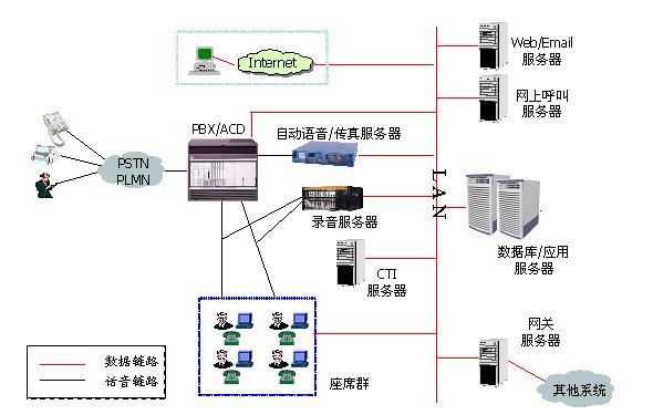 | PBX/ACD | 目前主流的排隊機,如ALCATEL、AVAYA、華為等以及一體化機和語音板卡等多種底層通信平臺; |
