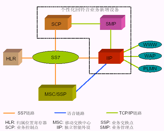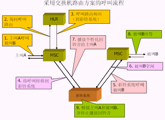 1. 交換機方式對現(xiàn)有的移動交換機進行了流程改造,并添加了彩鈴智能外設(shè)進行業(yè)務(wù)流程控制和業(yè)務(wù)數(shù)據(jù)維護