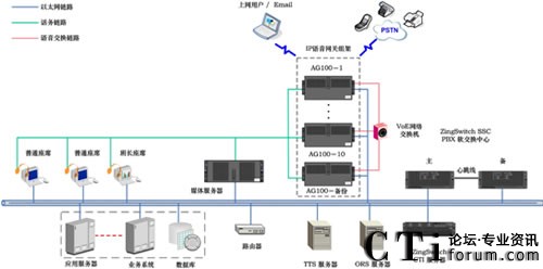 由于英立訊的CVNET架構(gòu)自身具備了完善的負(fù)載均衡能力,即使任何一臺AG100(IP語音網(wǎng)關(guān))發(fā)生故障,也不會影響整個聯(lián)絡(luò)中心平臺的運(yùn)行。另外,英立訊科技還提供可選的AG100 (n+1)備份方案:系統(tǒng)單獨(dú)提供一臺冗余的AG100設(shè)備,通過合理配置,使得這臺AG100的內(nèi)外線容量能夠覆蓋實際使用的AG100中任意一臺的配置。當(dāng)一臺AG100 發(fā)生故障時,可以切換到備份的AG100上,以替換出現(xiàn)故障的AG100,從而保證整套系統(tǒng)的話務(wù)應(yīng)用能夠保持原有容量并正常使用。