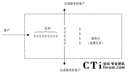 呼叫中心是一個典型的排隊系統(tǒng)。電話一個接著一個到來,接受各種服務。如果一個到達的客戶不能立即接受服務,這個客戶就加入到一個隊列中進行等待,圖示是一個單隊列的排隊模型,如果呼叫中心擁有多個隊列,則需要構(gòu)造多個上述的排隊模型。
