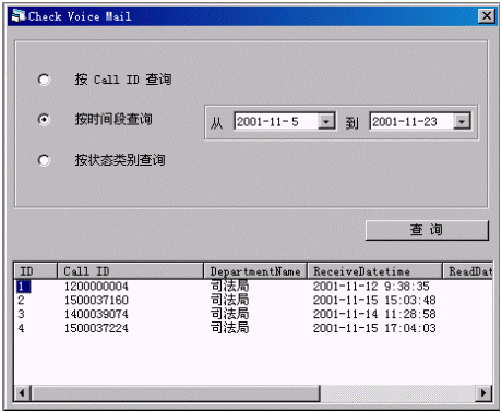 用戶電話進入中心,并轉(zhuǎn)至坐席,此時如果坐席處于忙或非工作時間,中心會自動提示用戶留言,留言后坐席在一定的時間內(nèi)給予回復處理,并在處理的同時對所有的語音留言Voice Mail做狀態(tài)分類統(tǒng)計。中心還對用戶留言的處理過程進行跟蹤,以便防止大量語音留言不能得到及時處理,影響中心的服務(wù)質(zhì)量。