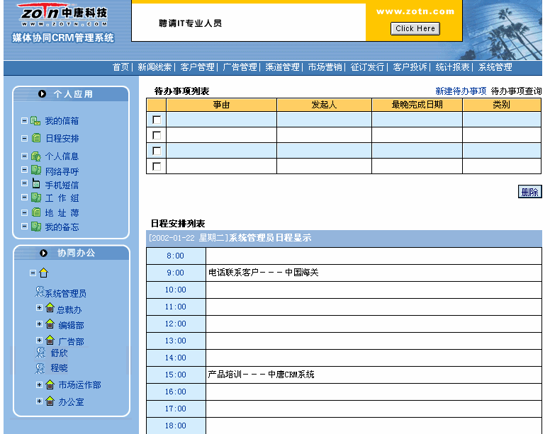 中唐科技公司推出國(guó)內(nèi)首家針對(duì)媒體行業(yè)的協(xié)同CRM產(chǎn)品系列