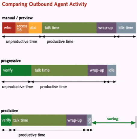 預(yù)測撥號 是一種用來在一個短的時段中對大量客戶進行聯(lián)絡(luò)的一種先進的步進模式。使用預(yù)測撥號,坐席代表僅僅處理成功的呼叫。預(yù)測撥號實現(xiàn)了最高水平的效率。預(yù)測撥號使用精密復(fù)雜的技術(shù)預(yù)測沒有被應(yīng)答的呼叫的一個百分比和什么時候坐席代表將完成正在進行著的呼叫。預(yù)測撥號將自動撥電話號碼并對其中一些呼叫會失敗做好了準備。使用預(yù)測撥號,坐席代表每小時的通話時間大約在40到45分鐘。