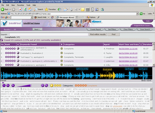 IntelliFind將客戶呼叫轉(zhuǎn)換成可搜索的數(shù)據(jù)庫形式,根據(jù)業(yè)務(wù)分類、短語和關(guān)鍵字鑒別呼叫。IntelliFind使用語音文本轉(zhuǎn)換技術(shù)轉(zhuǎn)換客戶呼叫錄音,幫助用戶理解客戶交互的情況。