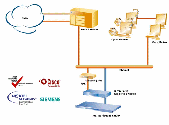 ULTRA通過VoIP記錄儀來記錄VoIP呼叫中心環(huán)境中的通話。VoIP記錄儀捕獲相關(guān)語音包并儲(chǔ)存為標(biāo)準(zhǔn)語音文件格式。