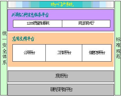 2 )系統(tǒng)基于 J2EE架構(gòu),采取三層結(jié)構(gòu)設計,分為前端應用(外部公共信息服務平臺)、應用支撐平臺和系統(tǒng)軟硬件平臺,以應用支撐平臺為核心,以安全和標準為保證。
