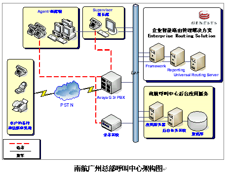 eSOON & Genesys為南航提供的解決方案包括:Genesys 平臺(tái)架構(gòu)(Framework),以及ERS企業(yè)智能路由解決方案(Enterprise Routing Solution)。建成以廣州為中心,全國(guó)分布而集中式接近200坐席的呼叫中心,并于本年開(kāi)始進(jìn)行語(yǔ)音/數(shù)據(jù)聯(lián)網(wǎng)。