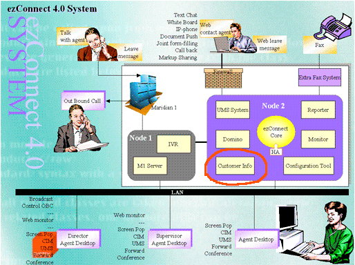 作為一種成功的企業(yè)應(yīng)用案例,這種方案已經(jīng)成功的應(yīng)用在我們的企業(yè)級多媒體呼叫中心 ezConnect產(chǎn)品中,該產(chǎn)品能同時處理傳統(tǒng)呼叫中心的電話請求和以互聯(lián)網(wǎng)為中心的Web 請求,同時配備多種實時交流手段,軟電話功能和基于web 的文本交談,圖片共享,白板,文檔推送,IP電話,UMS, SMS 和WAP 等為客戶提供很方便且實用的功能, 并且提供基于特定技能路由的分配器,同時處理電話和Web請求。而且同時支持多種語言并提供統(tǒng)一的配置工具。當(dāng)該請求到達(dá)座席時,在座席的桌面上彈出客戶的基本信息和交易信息,座席可以根據(jù)這些信息給客戶提供更加個性化的服務(wù)。本文就針對該產(chǎn)品的實際開發(fā)和實現(xiàn), 以及工作中的一些感想來與大家共同探討客戶信息管理的應(yīng)用和前景。