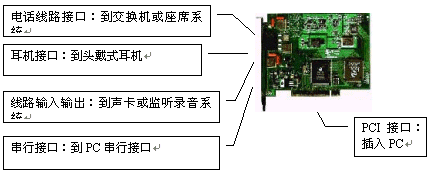 IN和LINE OUT接口,與聲卡配合實現語音錄放;計算機通過串行口實現對座席卡的控制。