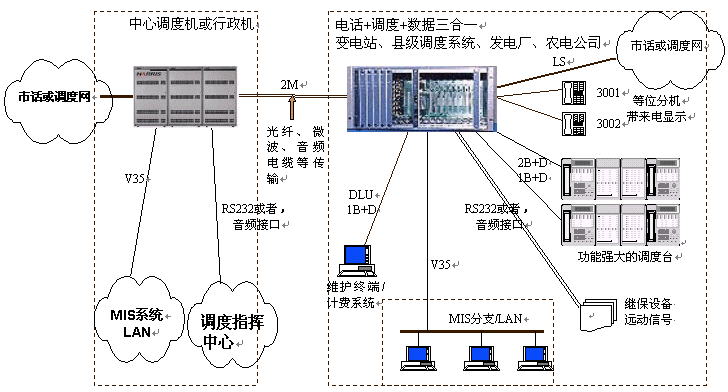 b) 行政及調度電話:電話分機功能等同交換機本地電話分機;可支持來電顯示CID。遠端自帶交換功能,當與交換機連接的2M中繼斷時仍可維持內部通話功能。