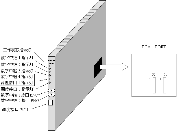 EDT4D 是在舊 EDT4 板上增加調(diào)度接口。見圖 4 , EDT4D 為一塊 H20-20 交換機(jī)插板,厚度為兩個槽口。 EDT4 通過扁平電纜與交換機(jī)公共控制機(jī)柜的背板 PGA 相連,提取交換機(jī)時隙;并將時隙轉(zhuǎn)換為由四個數(shù)字中繼接口 E1 組成的準(zhǔn) V5.2 接口與遠(yuǎn)端模塊相連。一塊 EDT4 可接 2 個 PGA 端口組,共 128 個話路。