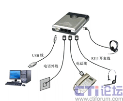 “話務(wù)通”設(shè)計(jì)新穎,接口包括電話線路接口、電話機(jī)接口、耳機(jī)接口和USB通信接口。配置立體聲揚(yáng)聲器和環(huán)型提示燈,提供聲光提示!霸拕(wù)通”能夠提供IP網(wǎng)絡(luò)電話,自動(dòng)應(yīng)答,自動(dòng)外撥,來電彈屏,語音錄放,語音留言等功能。