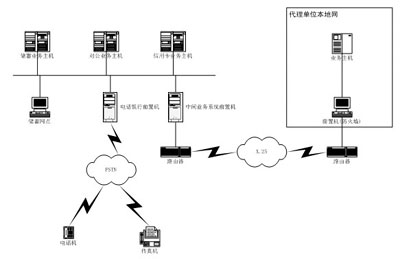 根據(jù)業(yè)務(wù)需求,電話銀行前置機(jī)以 PC服務(wù)器(聯(lián)想萬(wàn)全服務(wù)器)為硬件平臺(tái),通過(guò)PSTN網(wǎng)接電話機(jī)、傳真機(jī)以及其他查詢終端,另一端接電話銀行前置機(jī)中的語(yǔ)音卡。
