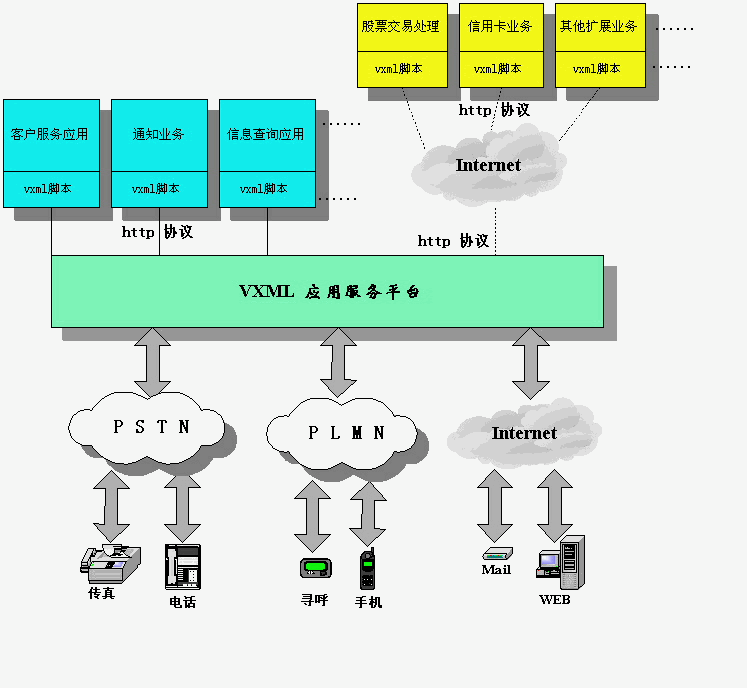 基于VXML的語音應(yīng)用平臺使得象電話這種最傳統(tǒng)的通訊工具可以實(shí)時(shí)便捷地訪問因特網(wǎng),而無需任何座席的幫助。