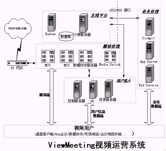發(fā)展寬帶視頻業(yè)務(wù),提供寬帶視頻通信解決方案是優(yōu)視風(fēng)的宗旨,利用ViewMeeting平臺(tái)(如圖1所示),運(yùn)營企業(yè)可以制定針對(duì)不同用戶需求的不同視頻業(yè)務(wù),使視頻業(yè)務(wù)能夠普及到更廣的用戶范圍中。